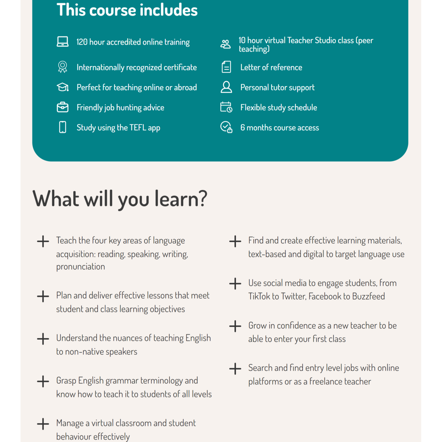 • PLUS! Become a TEFL-Pro with two in-depth specialist courses which cover 2714 - 300 Hour Hybrid Master TEFL Course with Teaching Practice Teaching English online 2714 - 300 Hour Hybrid Master TEFL Course with Teaching Practice  Teaching children (aged 3 – 16 years old).