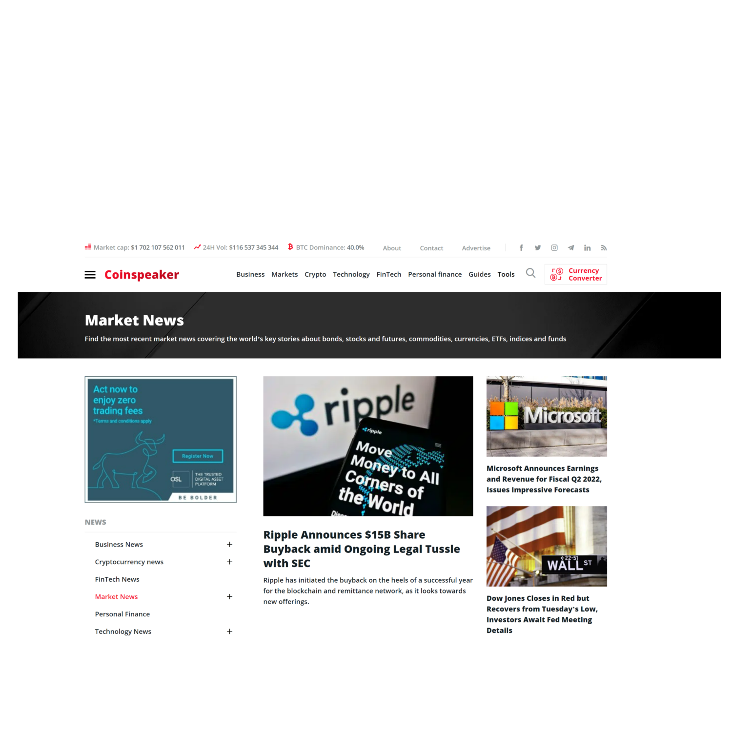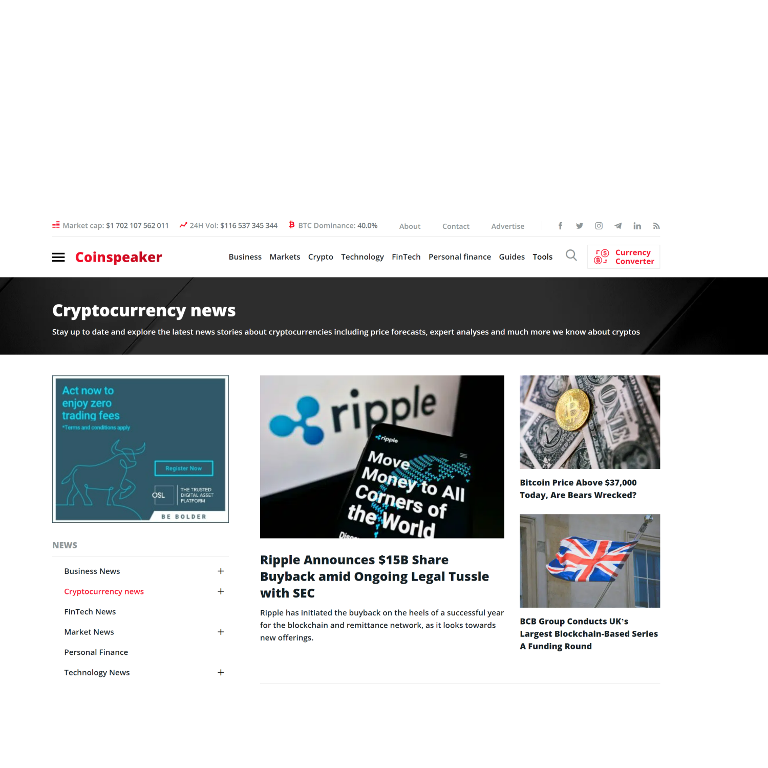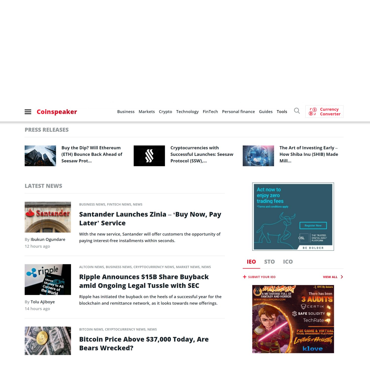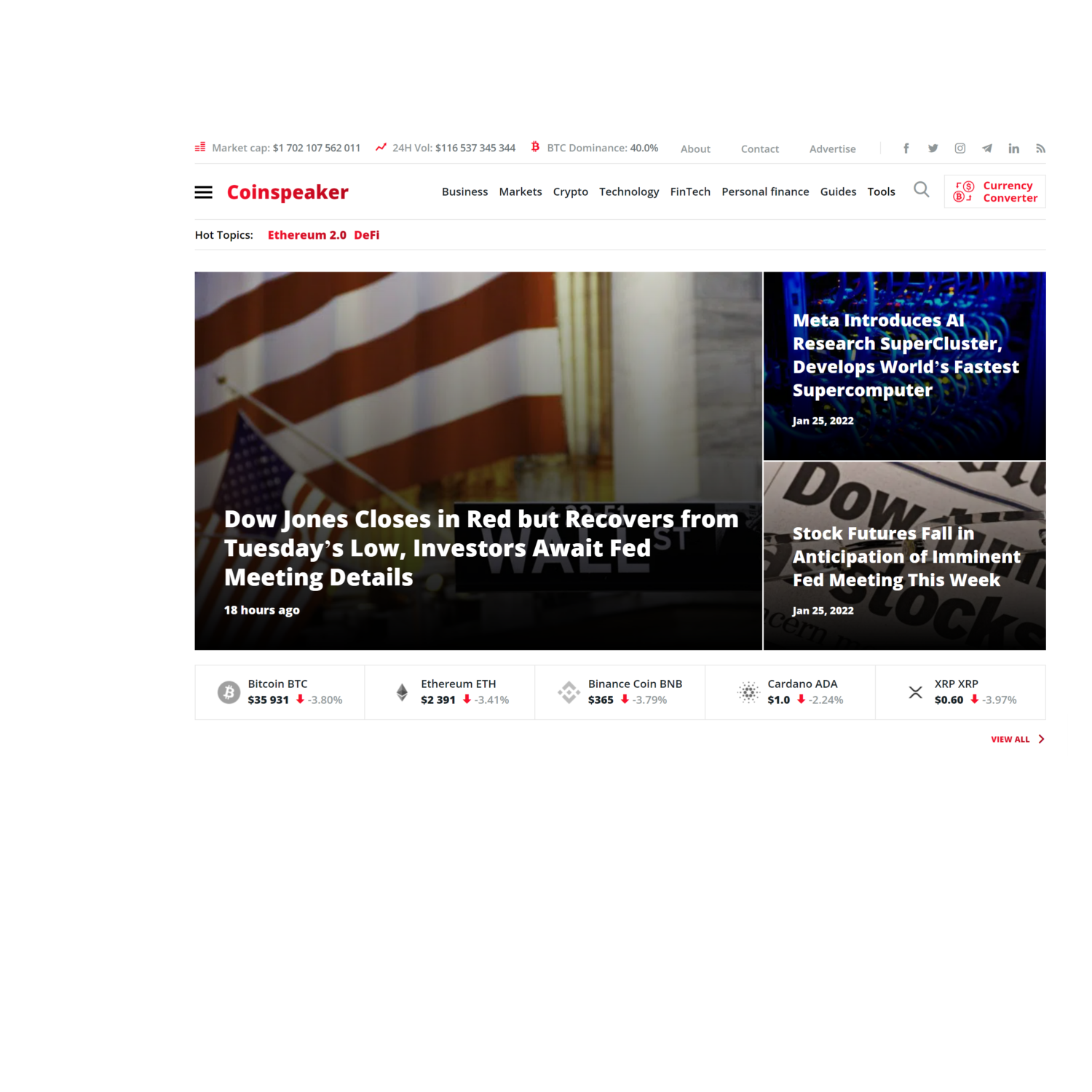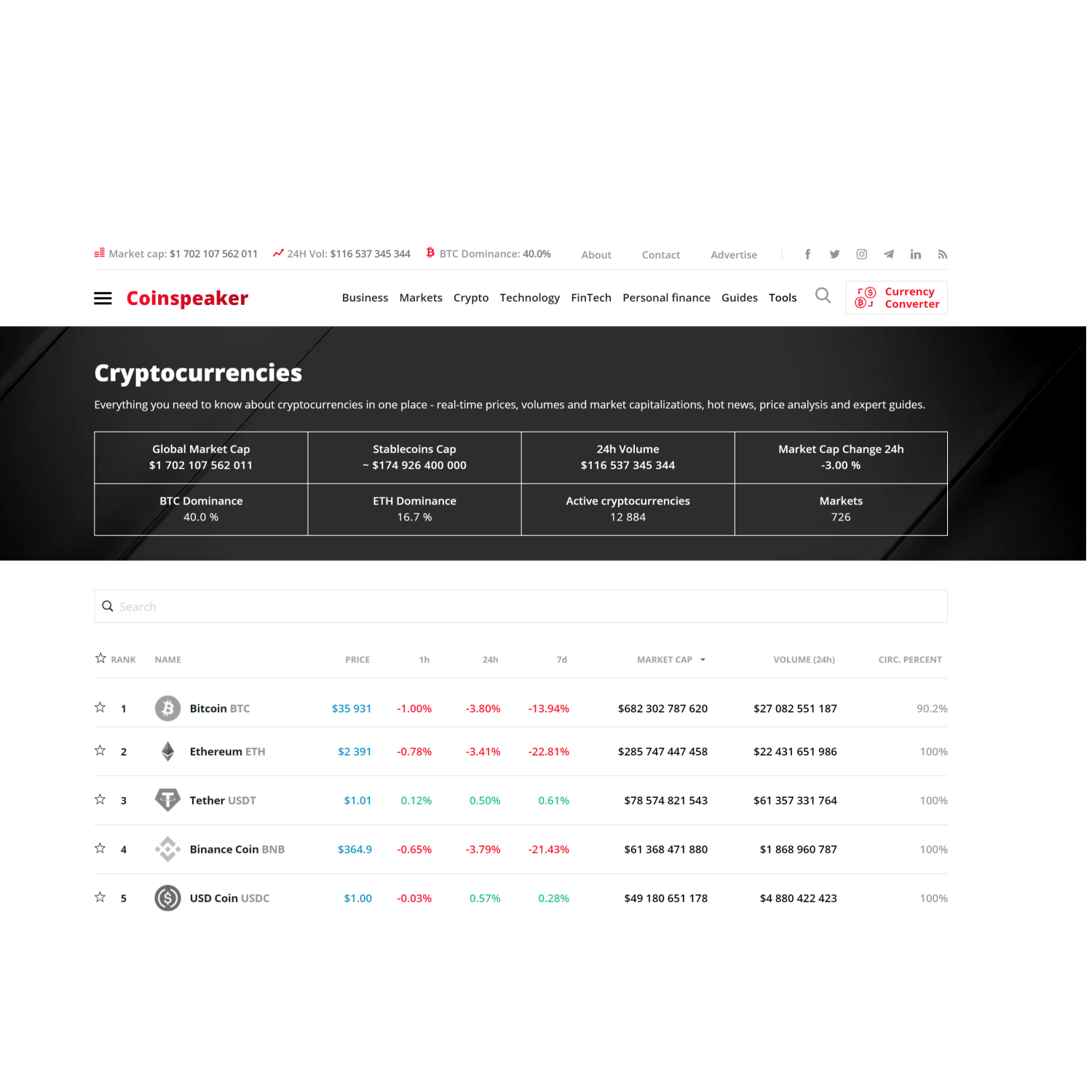 • CoinSpeaker’s coverage spans every aspect of Finance, Stocks, Technologies, FinTech, Blockchain, Cryptocurrencies, Payments, and Commerce spheres.