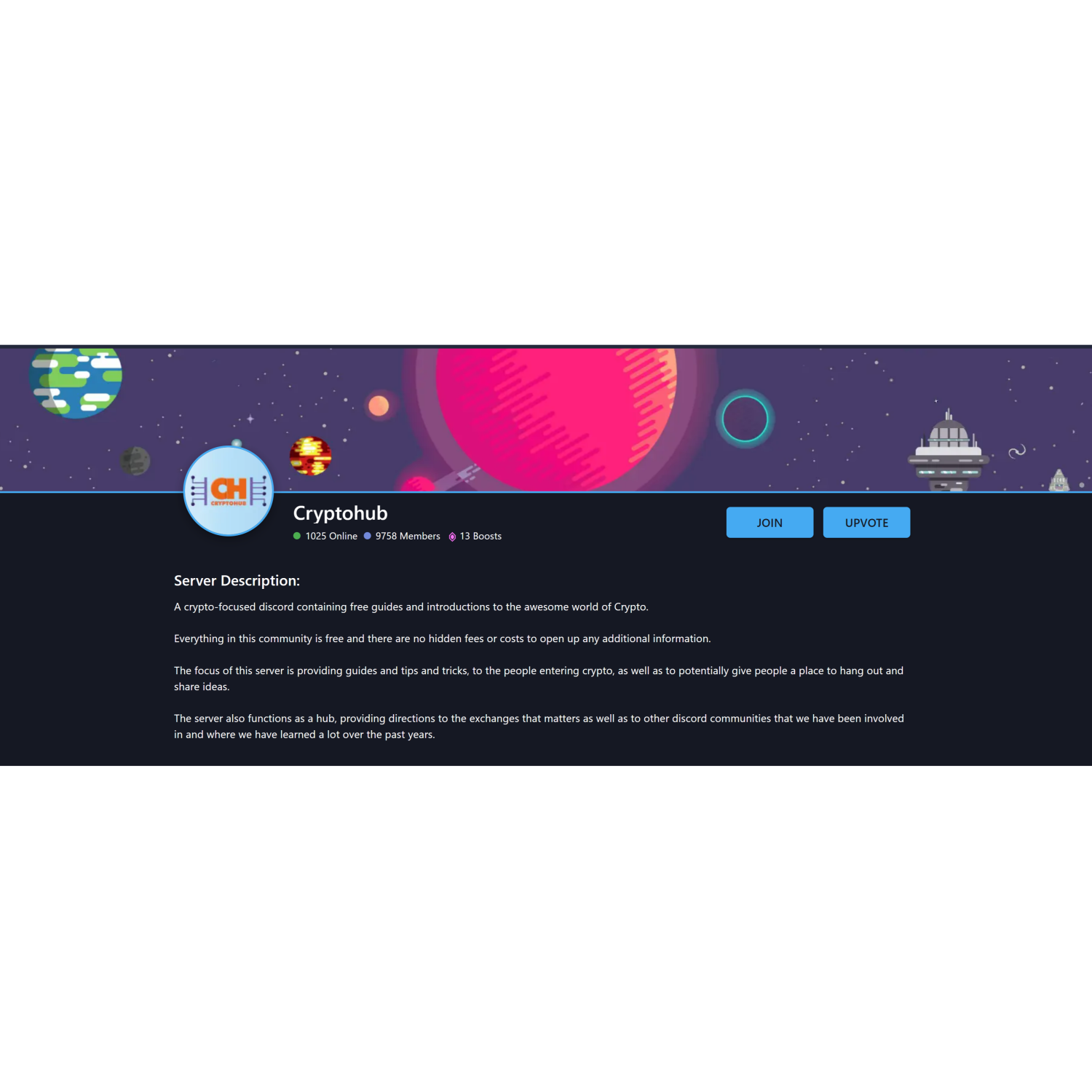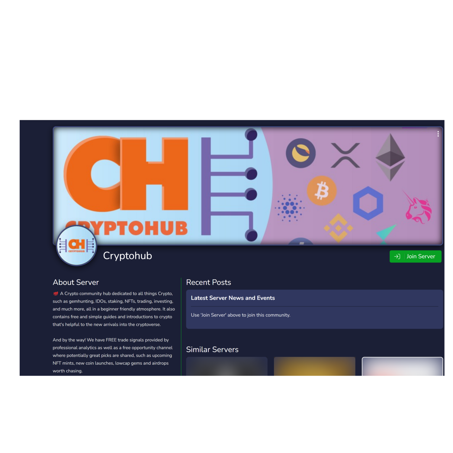 • A Crypto community hub dedicated to all things Crypto, such as gem hunting, IDOs, staking, NFTs, trading, investing, and much more, all in a beginner-friendly atmosphere.