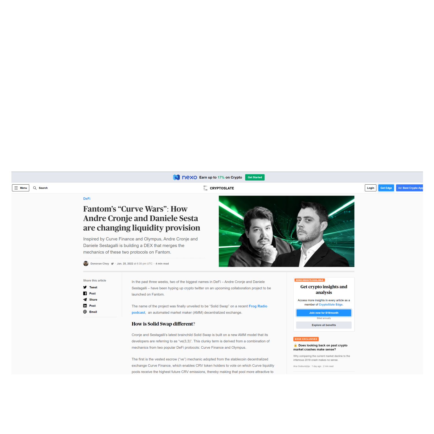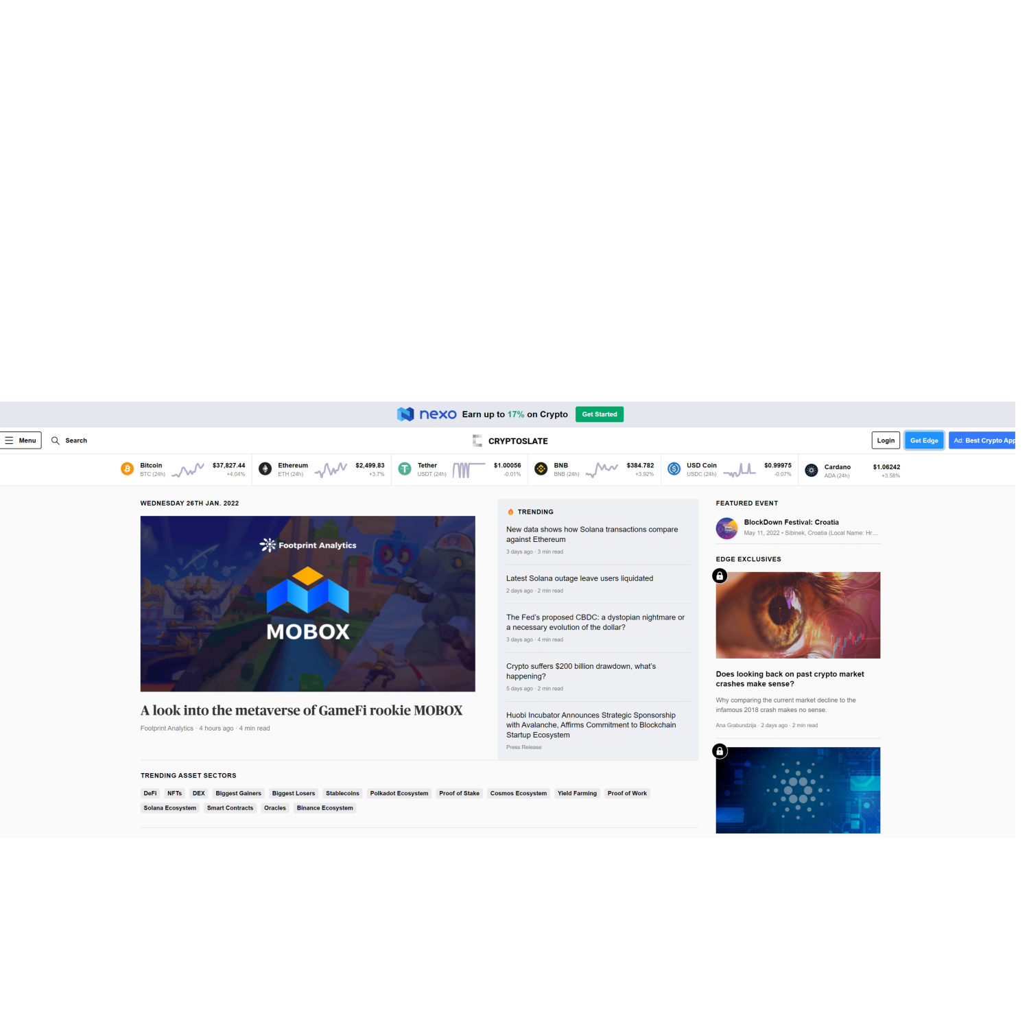 • Since 2017, CryptoSlate has become a trusted platform within the crypto community thanks to its combination of data, news, analysis, sector data, and a comprehensive directory of companies, products, and people.