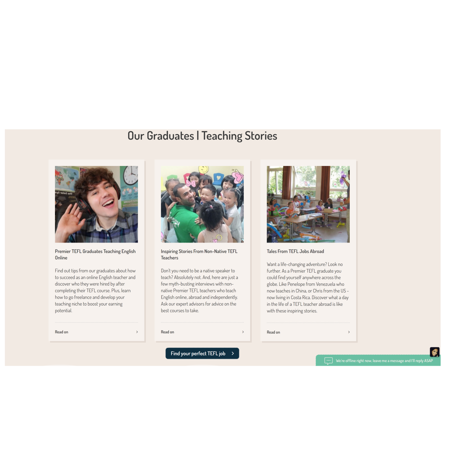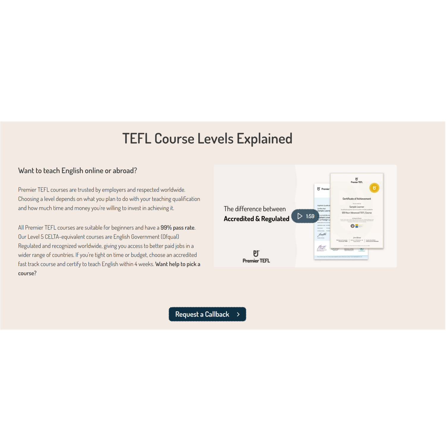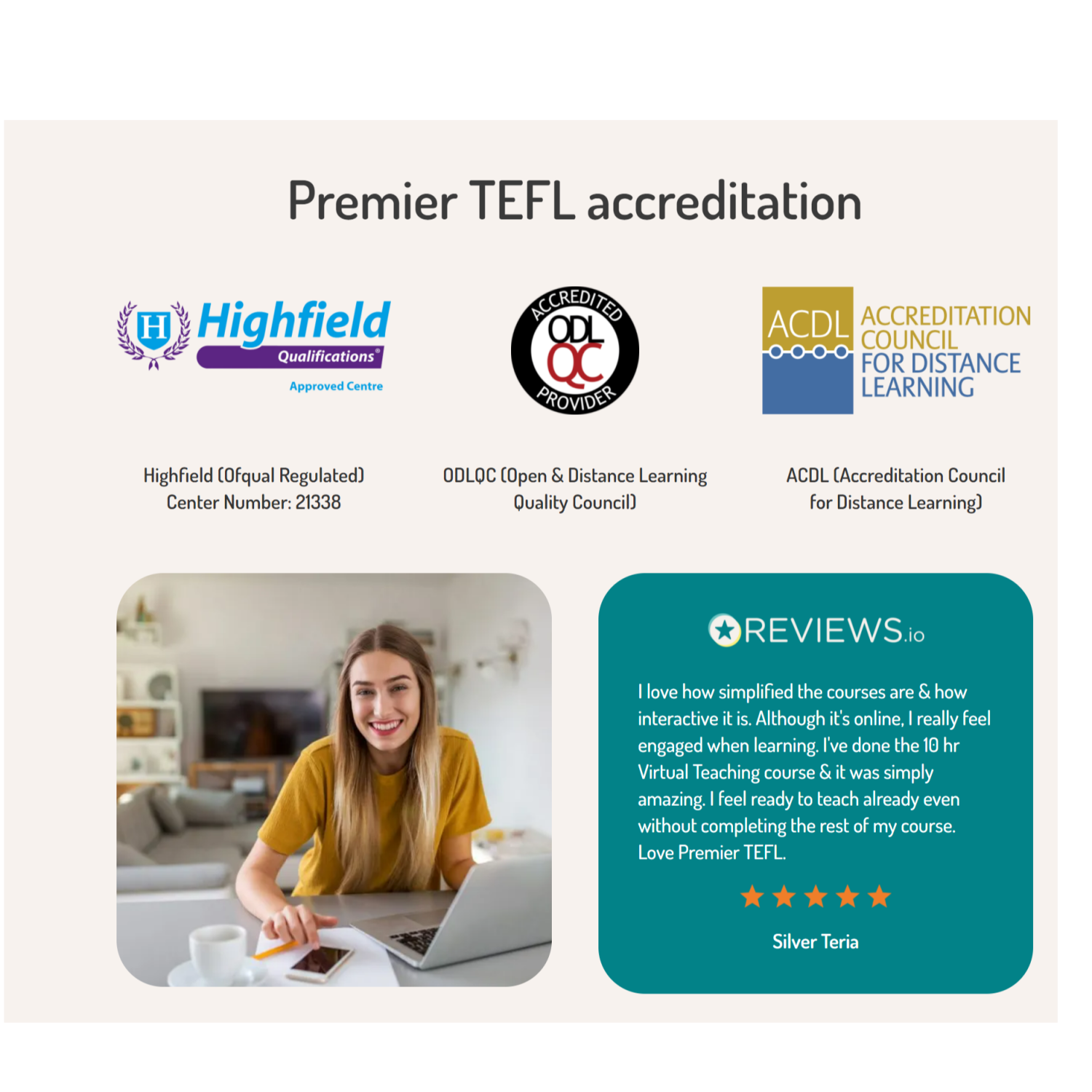 • PS. The only requirement to take a Premier TEFL course is a good level of English and a desire to teach it. Ready?