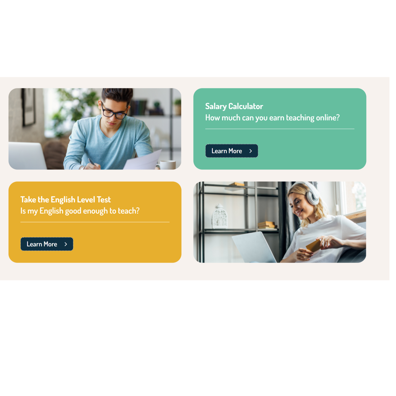 • When you finish you’ll receive a personal recommendation describing which TEFL course suits your language level and ability.